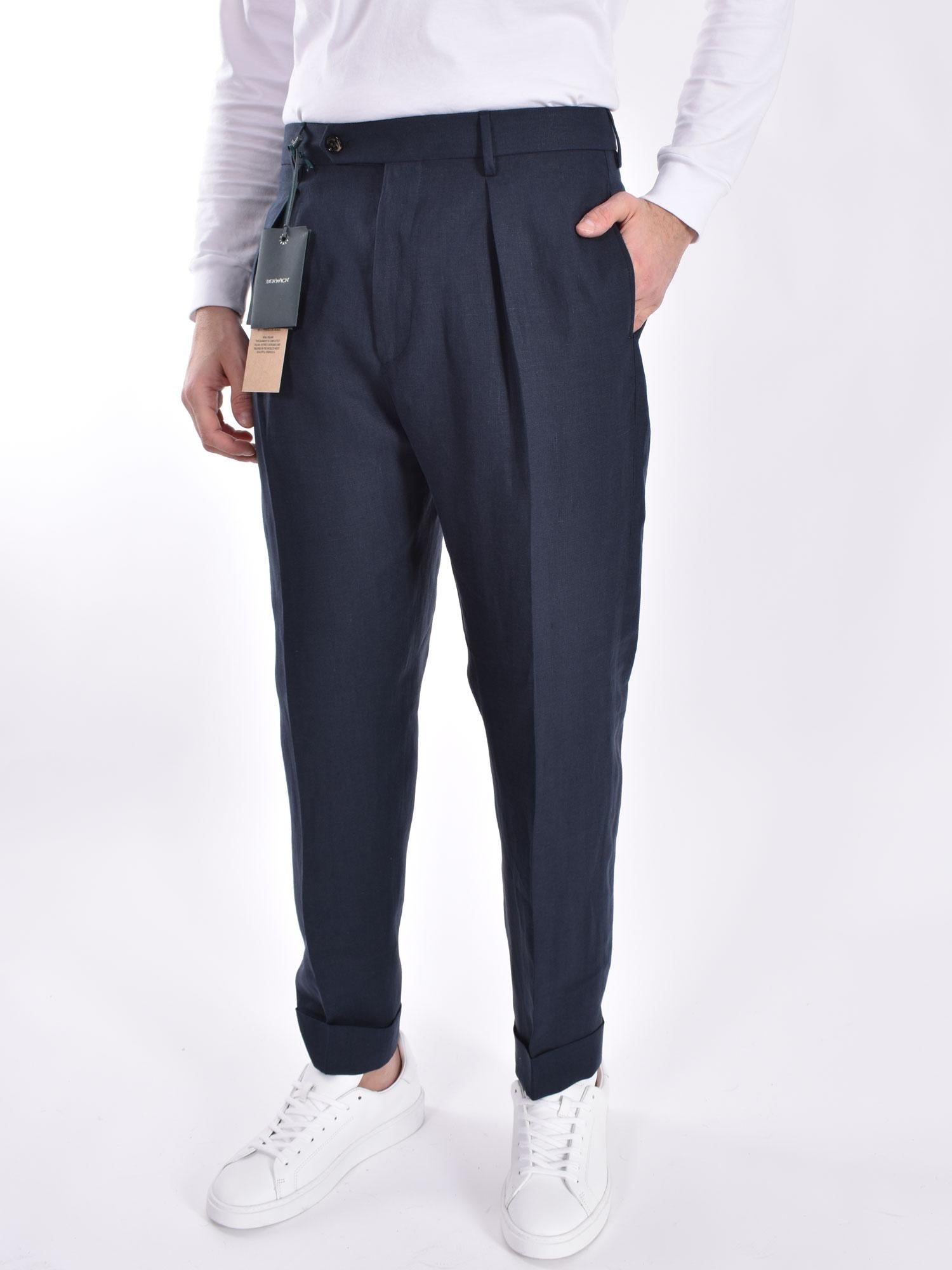Pantalone Berwich lino blu Chiaia