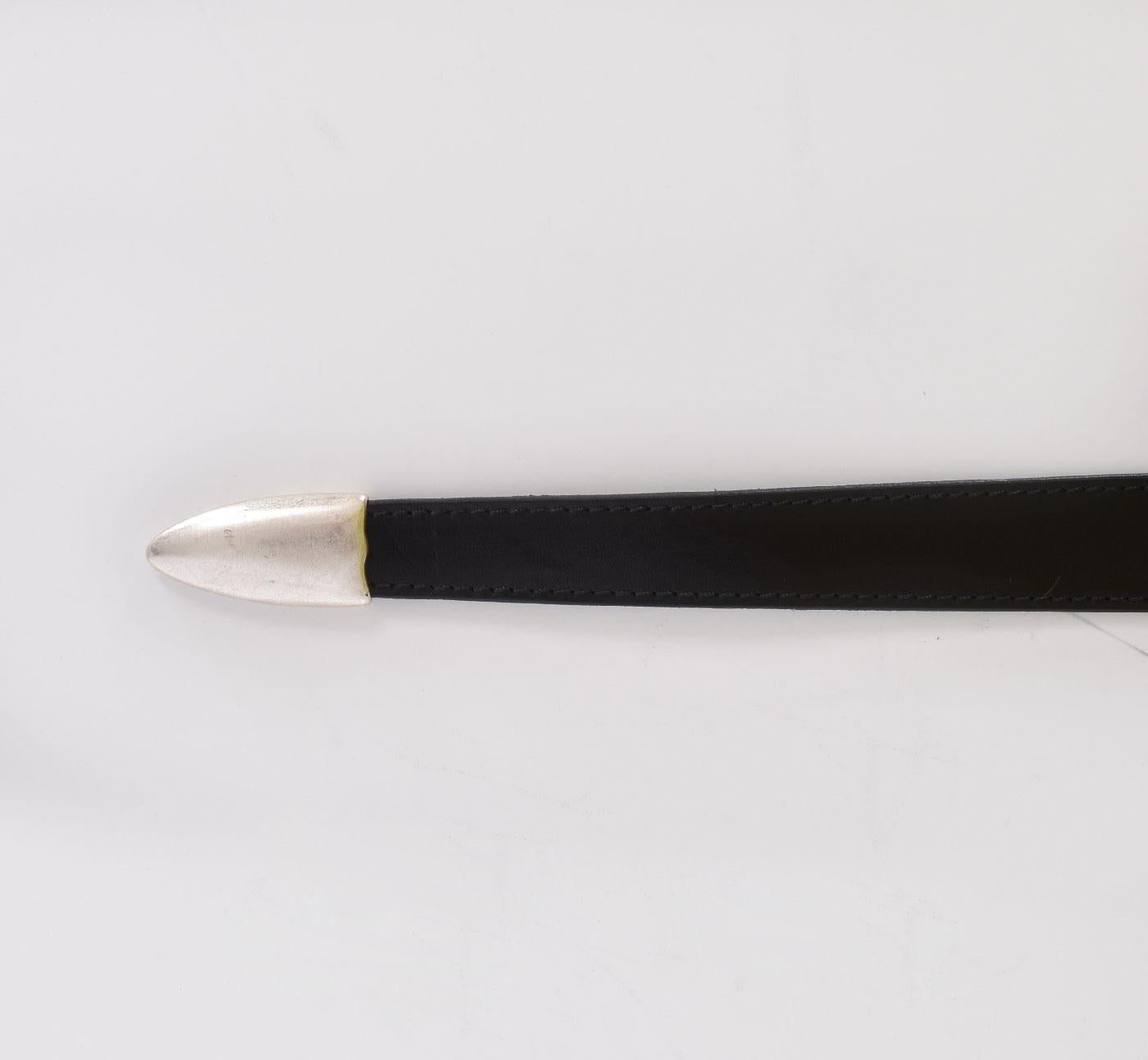 Cintura in pelle opaca modello sottile, fibbia e fondo punta in nichel. Colore nero. Larghezza 2,5 cm. Made in Italy.