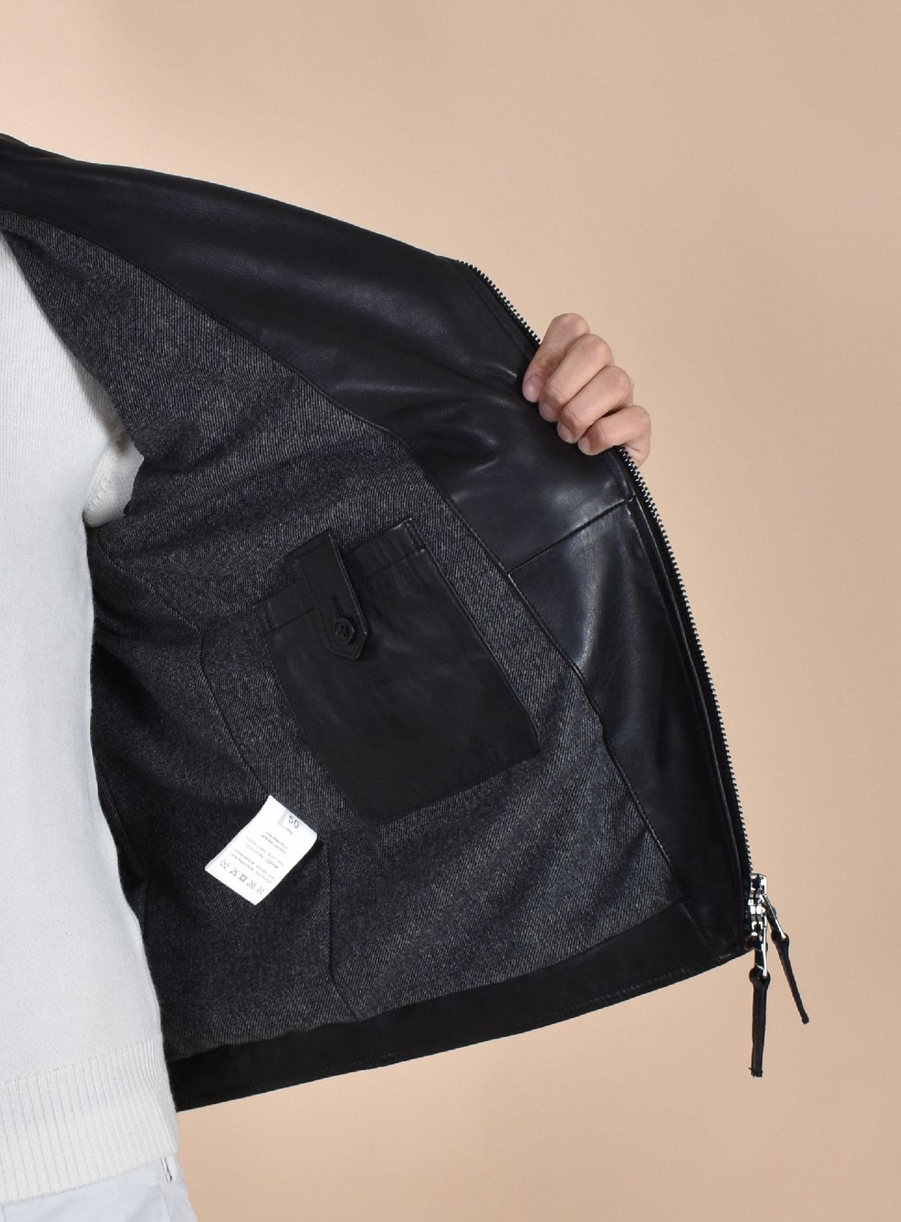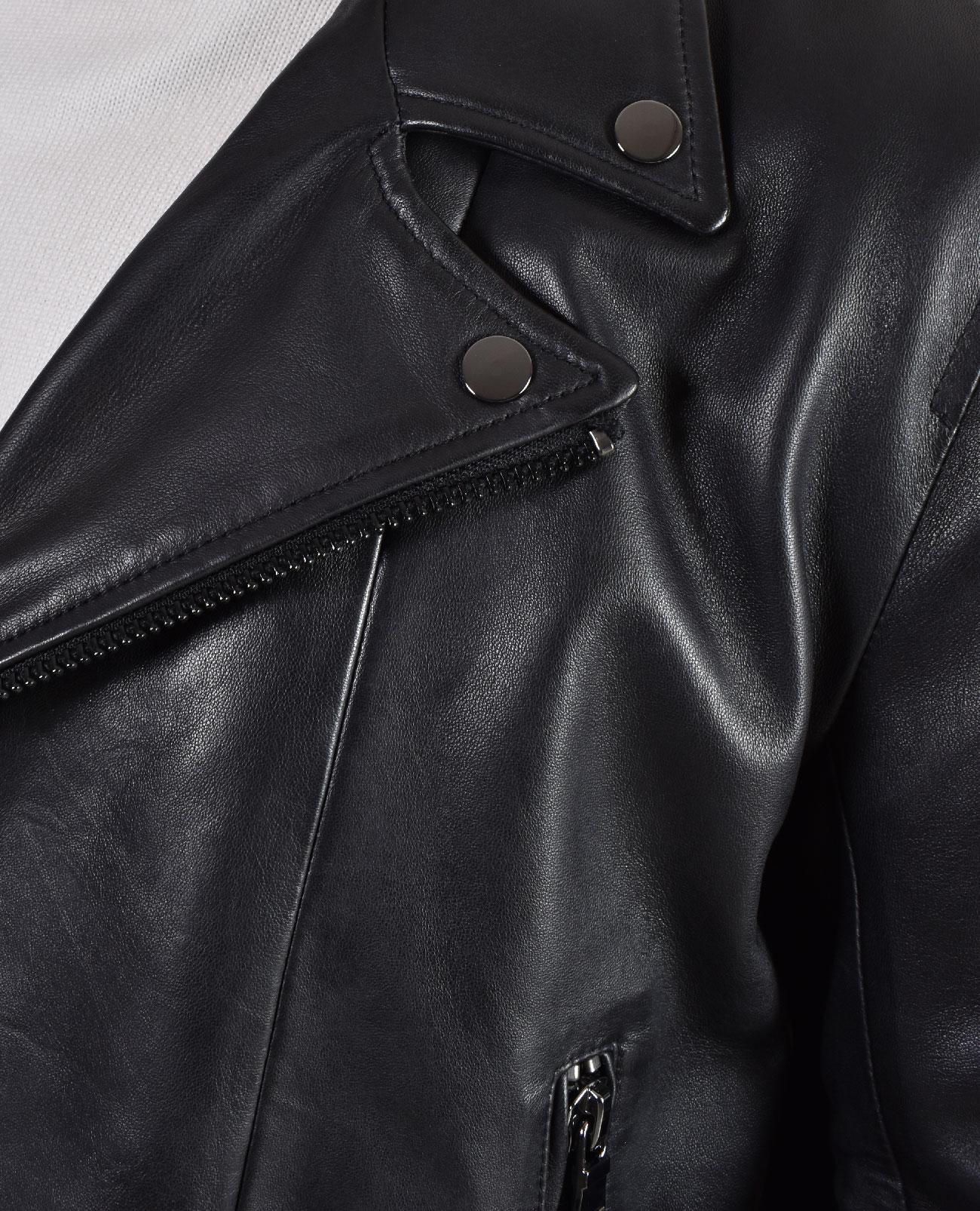 Giubbotto in vera pelle colore nero, modello chiodo. Vestibilità slim.