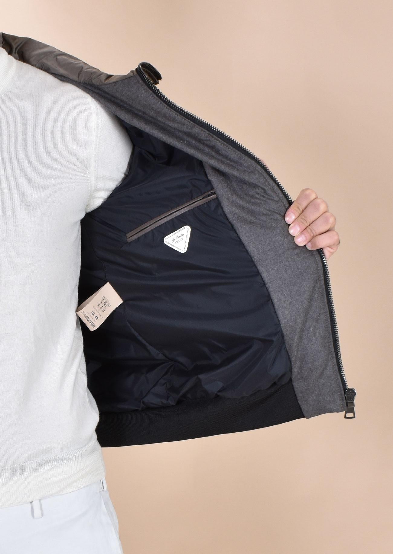 Giubbotto modello piumino con tessuto a contrasto in lana, cuciture a rombi. Colore bronzo, vestibilità slim. Spalle in vera pelle. Made in Italy. Collezione Autunno/Inverno 2026 Il modello in foto è alto 1.80 x 81 kg, veste taglia 50