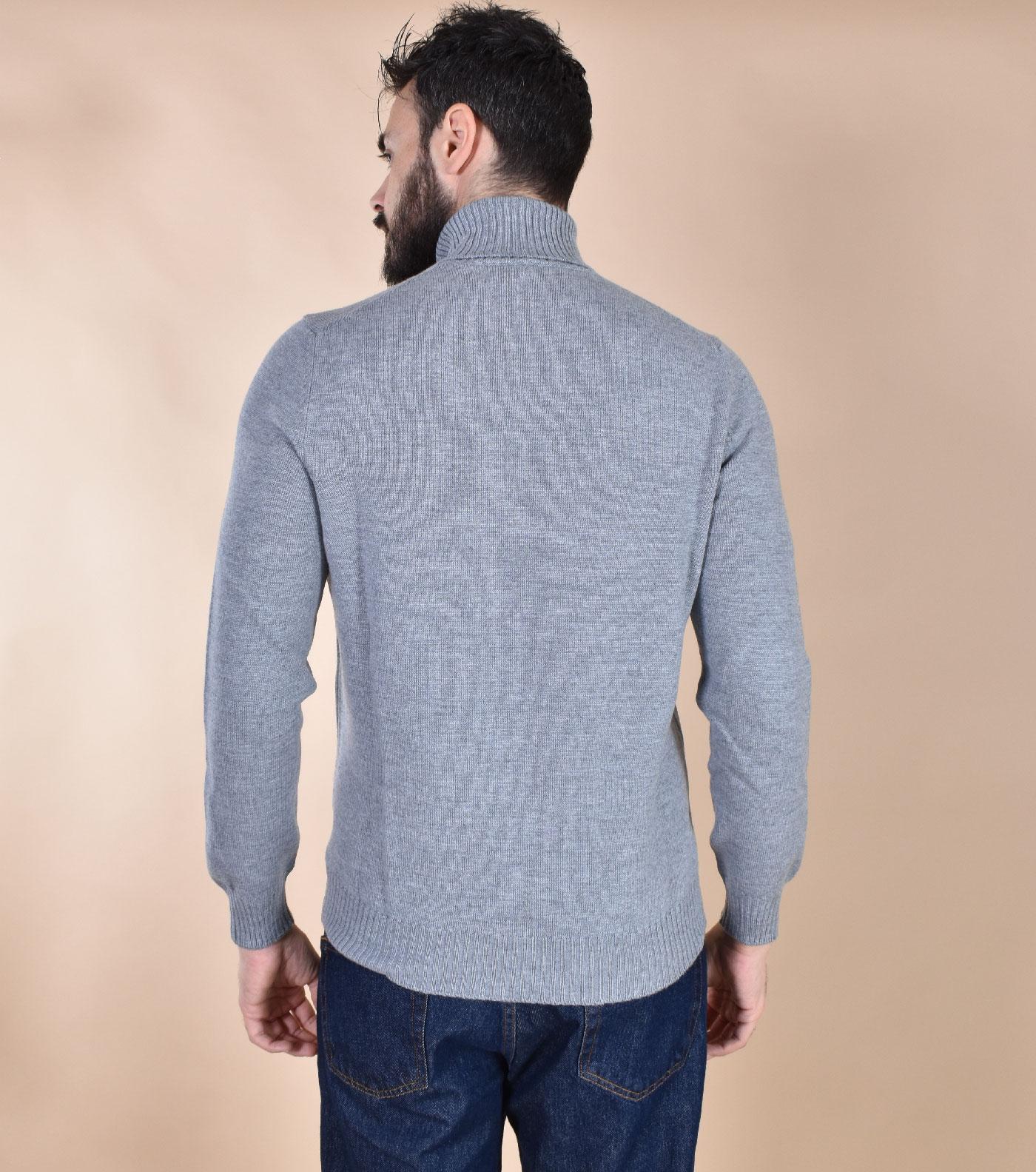 Maglia dolcevita in lana merinos extrafine, costruita con fibre di finezza inferiore ai 19,5 micron. Colore grigio, elastico sul fondo e sui polsini. Tessuto morbido e soffice, non provoca pungitura a contatto con la pelle. Made in Italy. Collezione Autunno/Inverno 2026 Il modello in foto è alto 1.80 x 81 kg, veste taglia 50