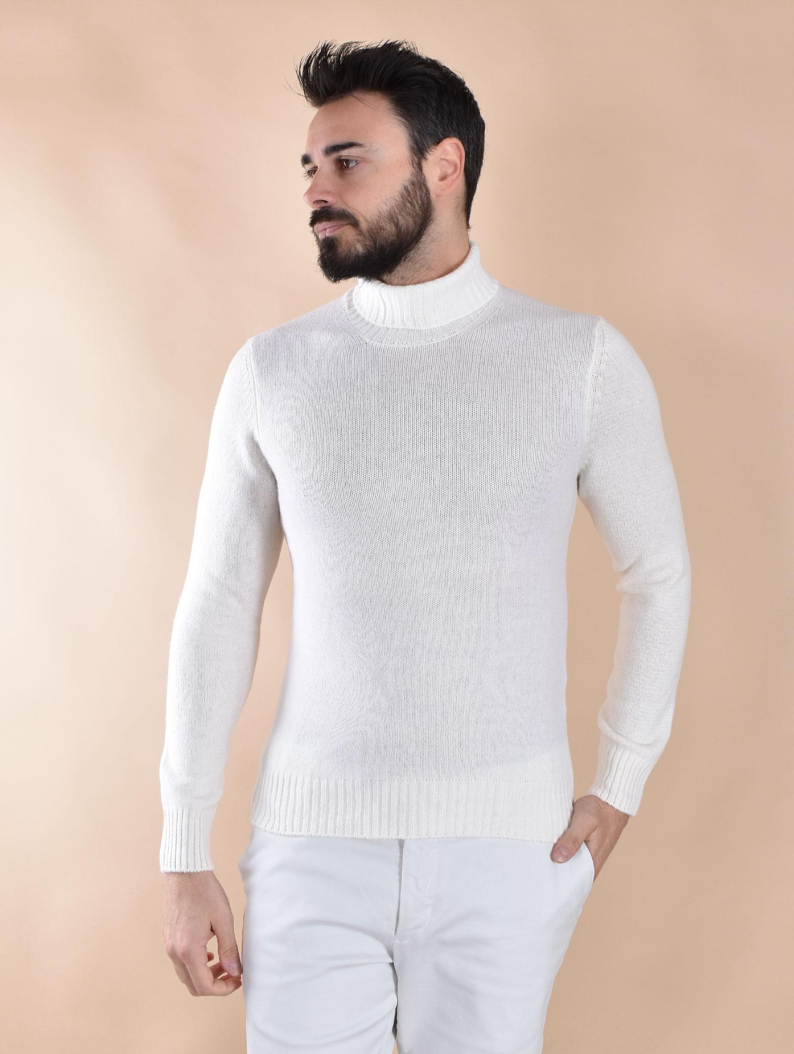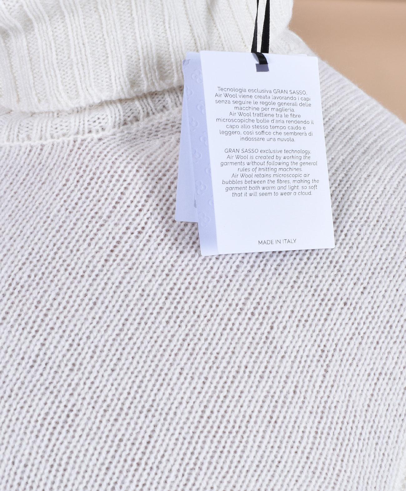 Dolcevita slim fit in 100% lana vergine ultra soffice, lavorazione air wool, tecnologia esclusiva Gran Sasso che rende il capo caldo e morbido. Tessuto morbido e soffice, non provoca pungitura a contatto con la pelle. Colore bianco panna. Made in Italy. Collezione Autunno/Inverno 2026 Il modello in foto è alto 1.80 x 81 kg, veste taglia 48