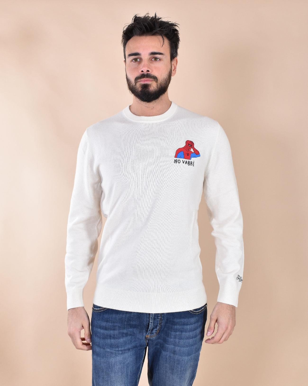 Maglia girocollo vestibilità slim, colore bianco con stampa Spider-man. Edizione Marvel. Tessuto morbido e soffice, non provoca fastidio a contatto con la pelle. Composizione 40% lana, 25% viscosa, 10% cashmere, 25% poliammidica. Collezione Autunno/Inverno 2026