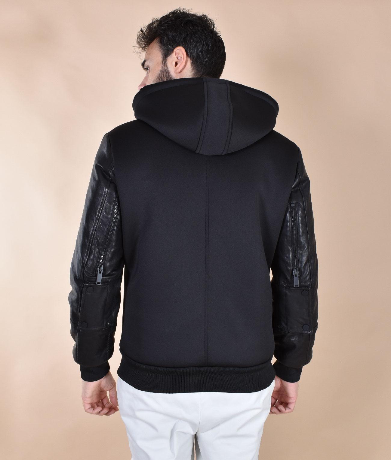 Giubbotto Arc bomber cappuccio maniche pelle nero