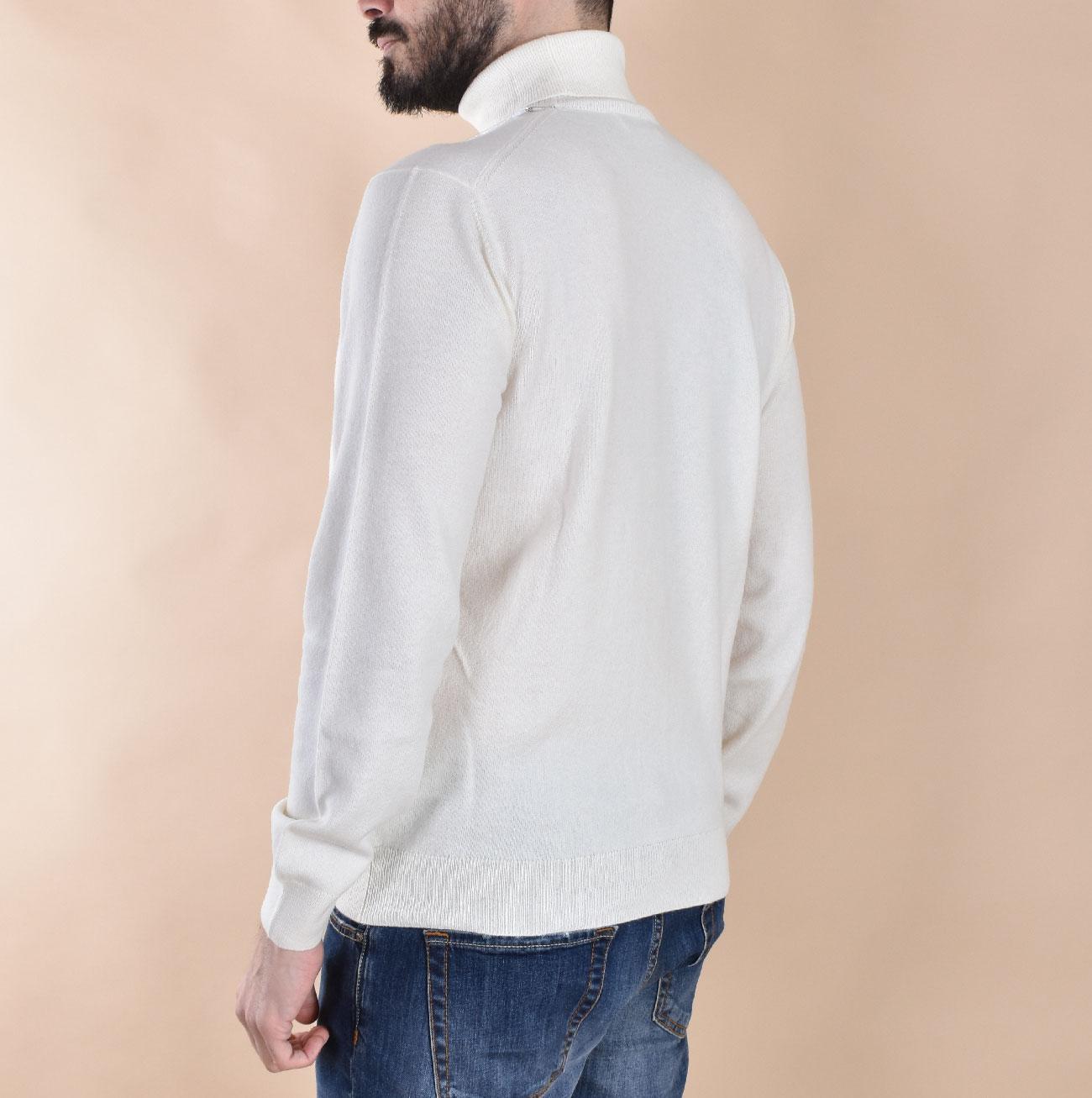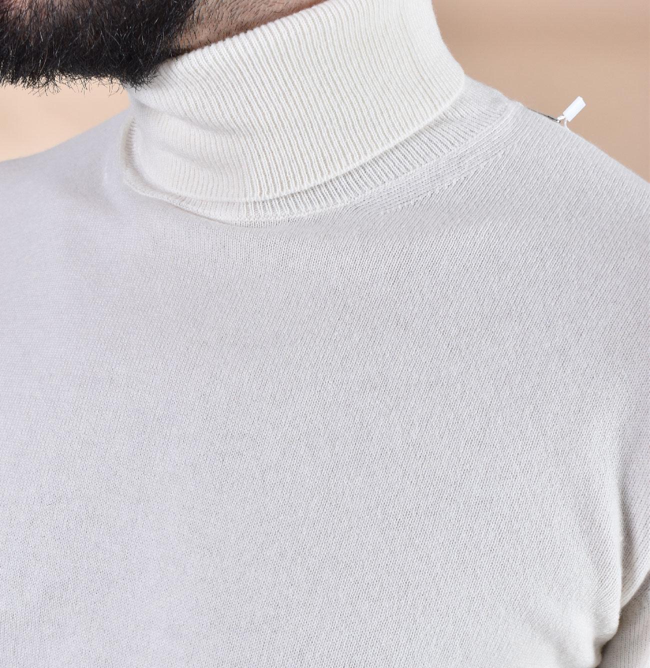 Maglia rasata modello dolcevita, vestibilità regolare, colore ecru. Composizione 80% lana merino extrafine, 20% cashmere. Tessuto morbido e soffice, non provoca fastidio a contatto con la pelle. Made in Italy. Collezione Autunno/Inverno 2026 Il modello in foto veste taglia 50, è alto 1.81cm e pesa circa 81 kg