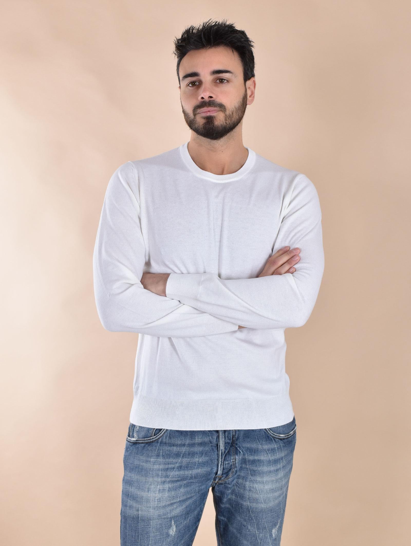 Maglia girocollo vestibilità slim, colore bianco ottico. Tessuto sottile, morbido e soffice, non provoca fastidio a contatto con la pelle. Composizione 50% lana, 50% cashmere. Made in Italy. Collezione Autunno/Inverno 2026