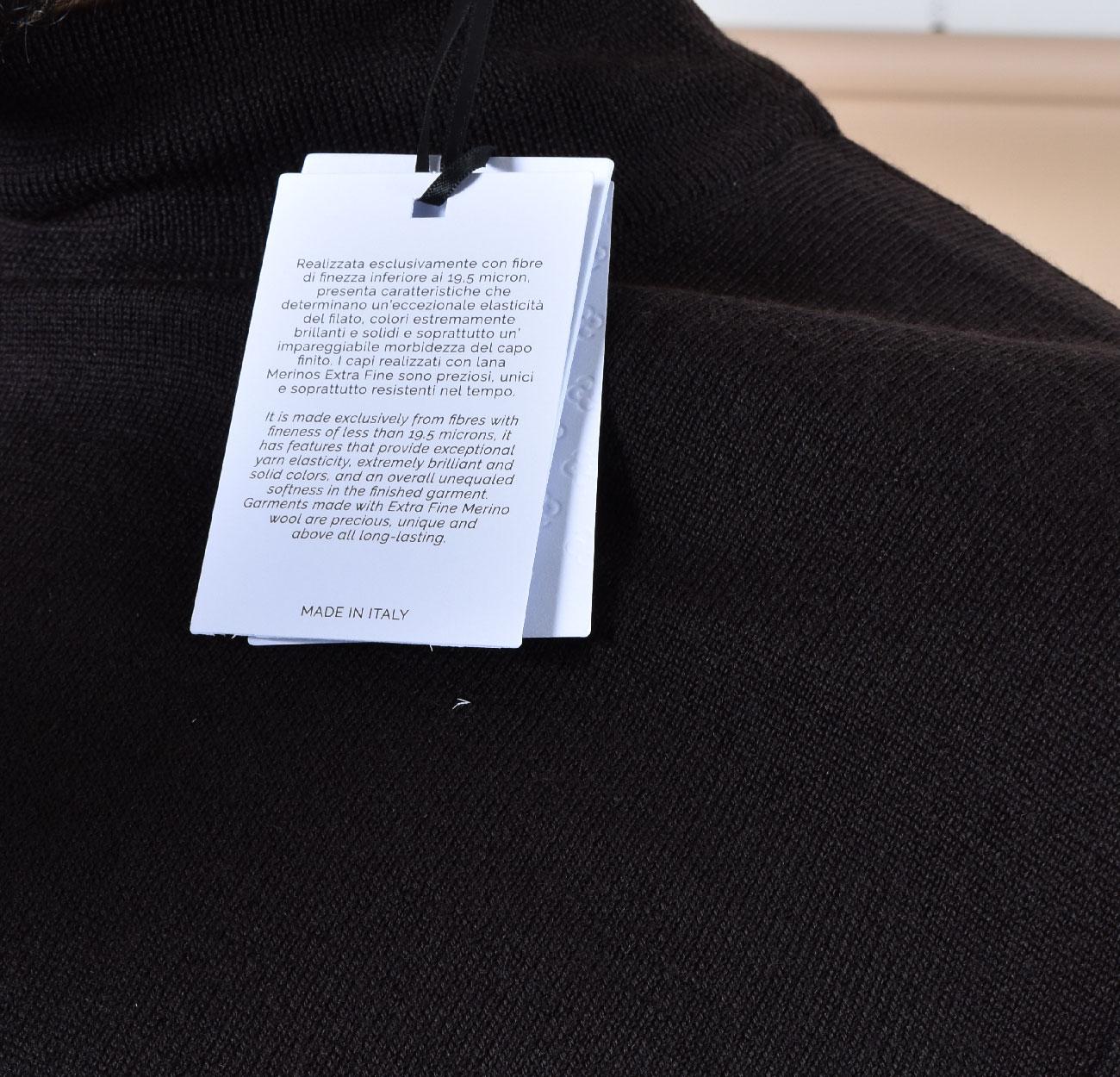 Maglia mezzo collo modello lupetto, colore marrone in lana merinos extrafine, costruita con fibre di finezza inferiore ai 19,5 micron. Tessuto morbido e soffice, non provoca pungitura a contatto con la pelle. Made in Italy. Collezione Autunno/Inverno 2026