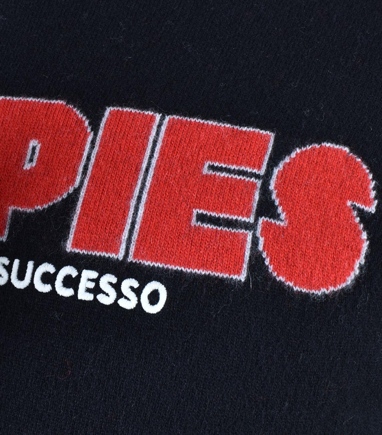 Maglia girocollo vestibilità regolare, colore nera, stampa Yuppies rossa. Tessuto morbido e soffice, non provoca pungitura a contatto con la pelle. Composizione 45 % lana, 30% viscosa, 15% poliammide, 10% cashmere.