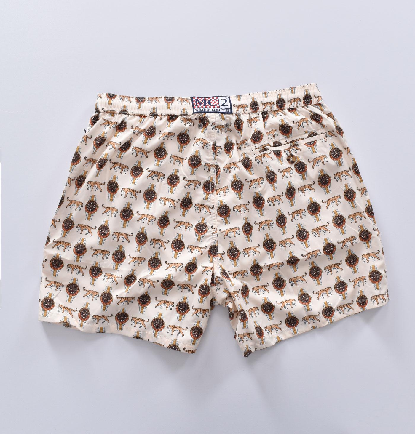 Costume bagno Mc2 Saint Barth wild watch bianco orologi tigre