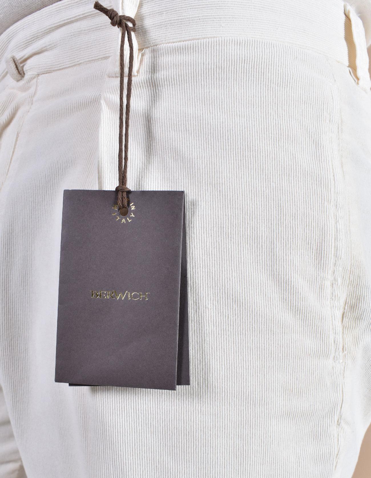 Pantalone vestibilità regolare e corta, risvolti sul fondo, tessuto in velluto a costine strette, colore ecrù. Pinces sul davanti. Composizione 97% cotone, 3% elastan. Made in Italy. Collezione Autunno/Inverno 2026 Il modello in foto è alto 1.80 x 81 kg, veste taglia 48