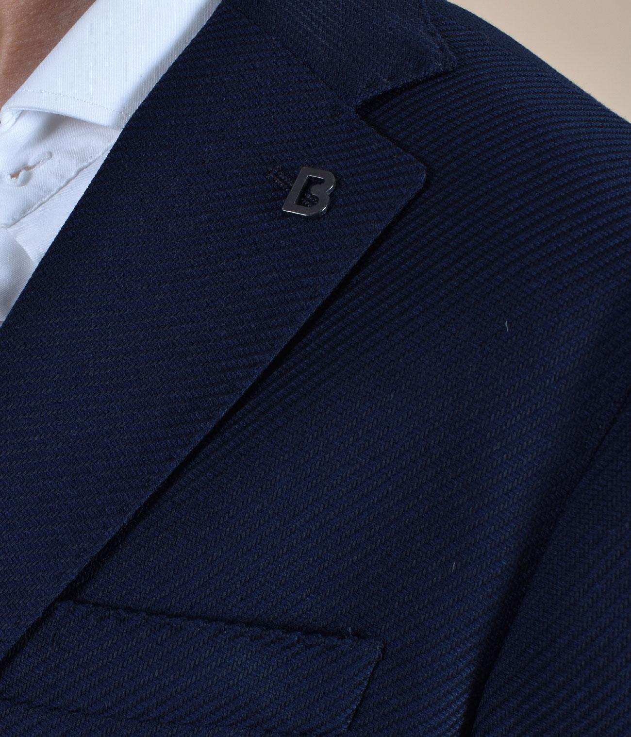 Giacca Breras Milano modello monopetto a due bottoni, vestibilità slim, colore blu. Tasche a toppa, retro a doppio spacco, tessuto micro tramato. Composizione 100% lana vergine. Made in Italy. Collezione Autunno/Inverno 2026