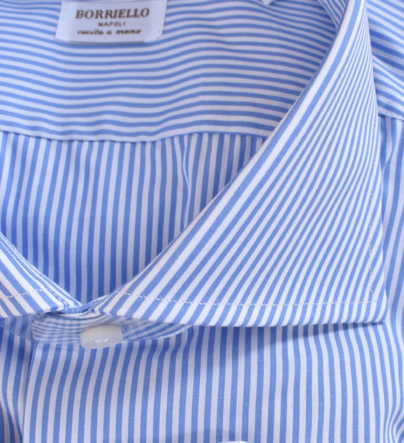 Camicia Borriello cucita a mano righe bianco celeste