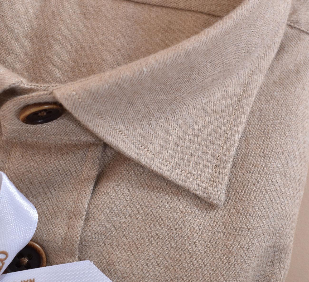 Camicia artigianale cucita a mano in tessuto in tessuto invernale, colore beige. Made in Italy