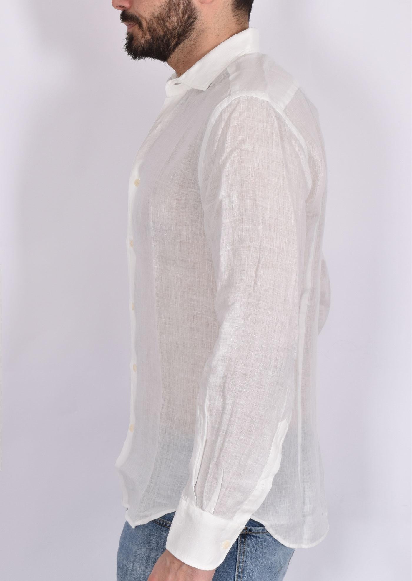 Camicia in 100% lino, colore bianco, vestibilità slim. Edizione Special Treatment.