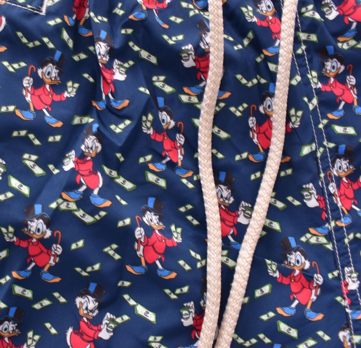 Costume da bagno colore blu con stampe zio paperone, edizione Disney. Elastico in vita, laccio in cotone, tasche ai lati, retina antibatterica.