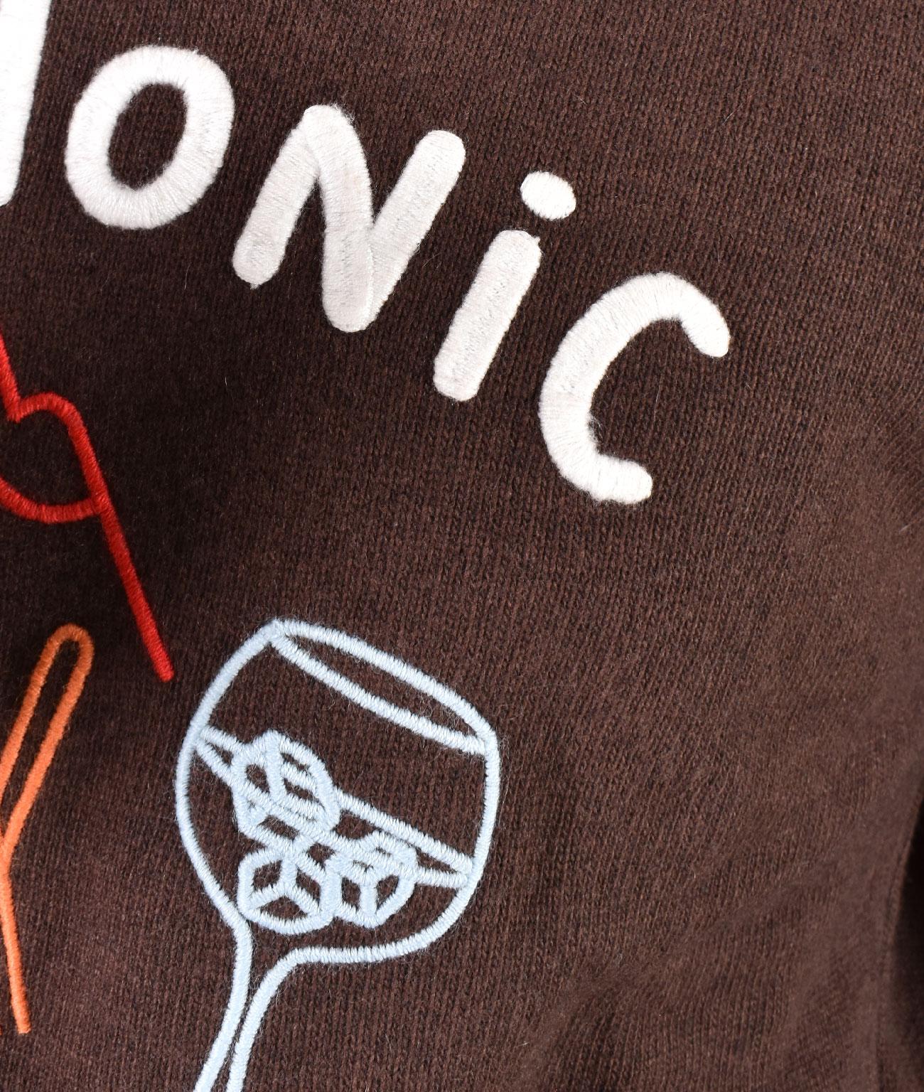 Maglia girocollo vestibilità regolare, stampa ricamata Gin TOnic. Tessuto morbido e soffice, non provoca pungitura a contatto con la pelle. Composizione 45 % lana, 30% viscosa, 15% poliammide, 10% cashmere.