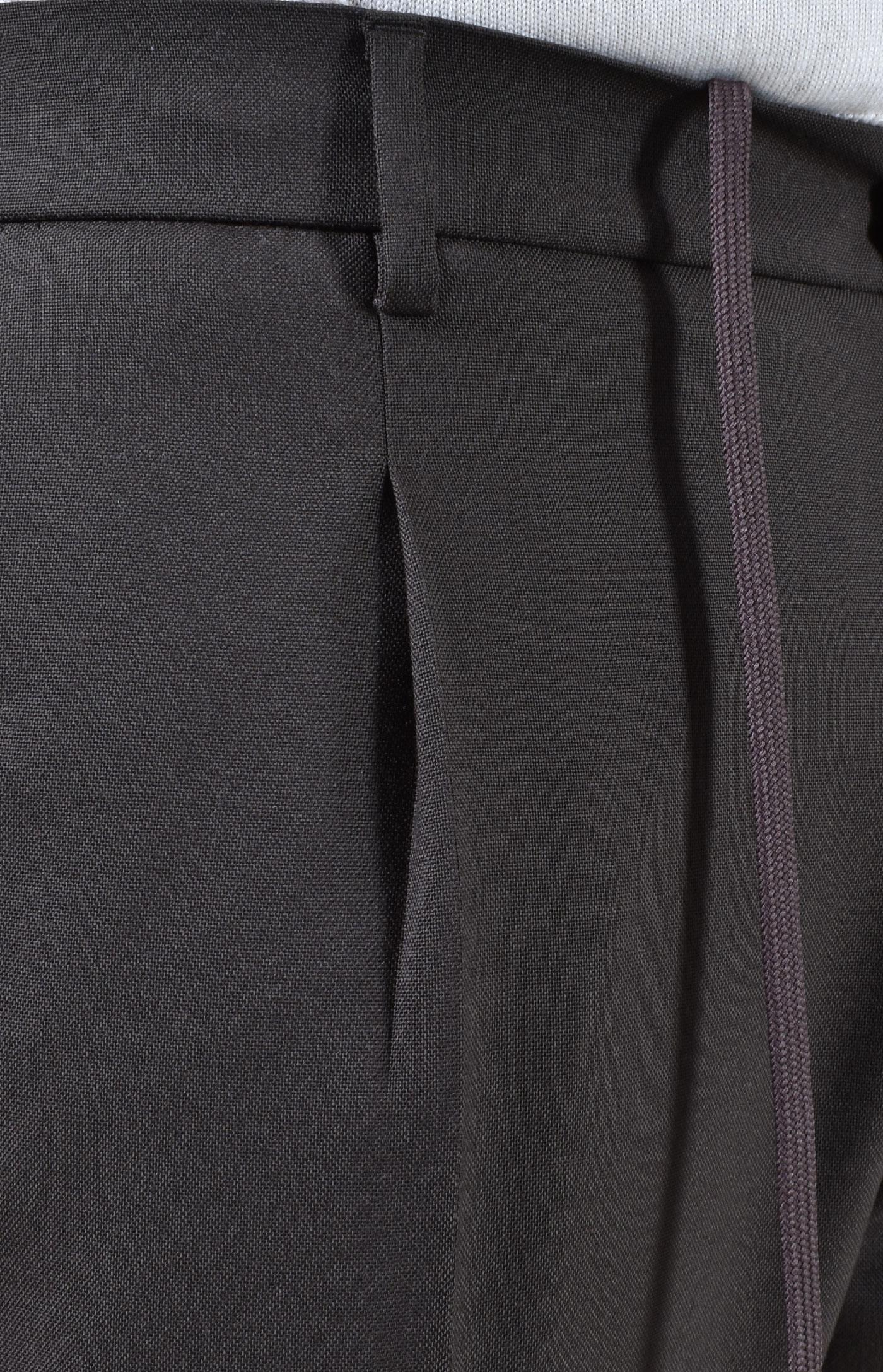 Pantalone vestibilità slim e corta, tasche america, chiusura in vita con cerniera e bottone, con laccio. COlore marrone. Elastico sul retro. Composizione 100% lana vergine. Made in Italy. Collezione Autunno/Inverno 2026 Il modello in foto è alto 1.80 x 81 kg, veste taglia 34