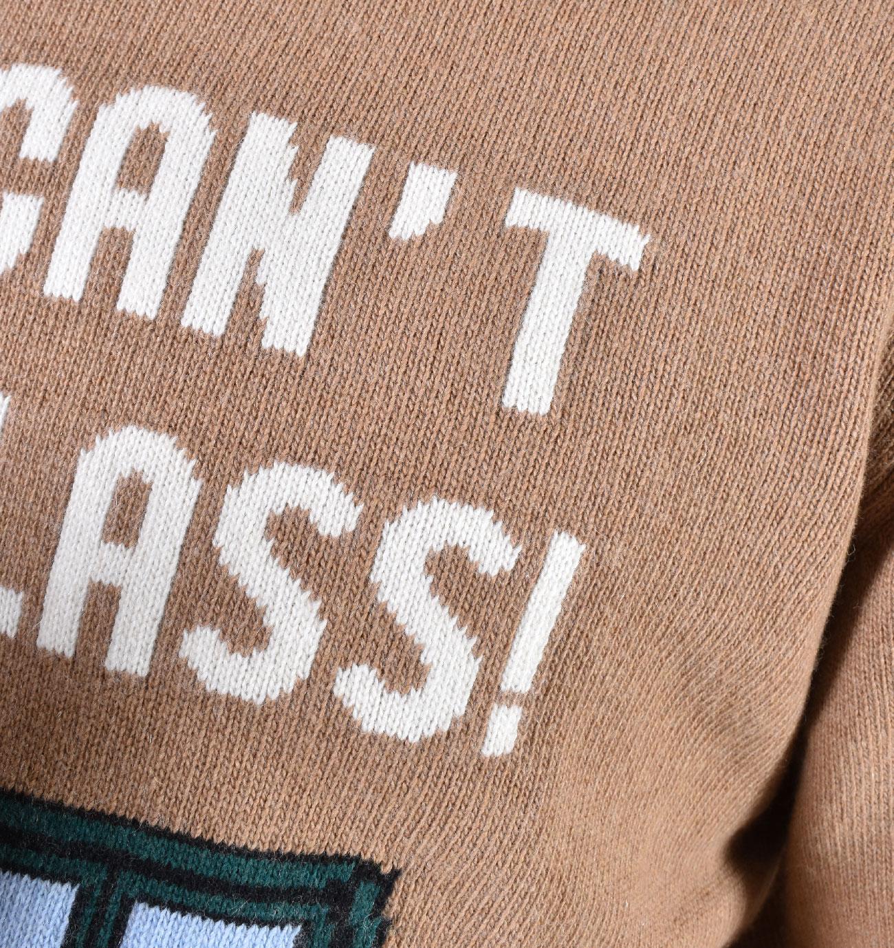 Maglia girocollo vestibilità regolare, colore cammello con stampa automobile. Tessuto morbido e soffice, non provoca pungitura a contatto con la pelle. Composizione 40% lana, 30% viscosa, 20% poliammide, 10% cashmere. Collezione Autunno/Inverno 2026 Il modello in foto è alto 1.80 x 81 kg, veste taglia L