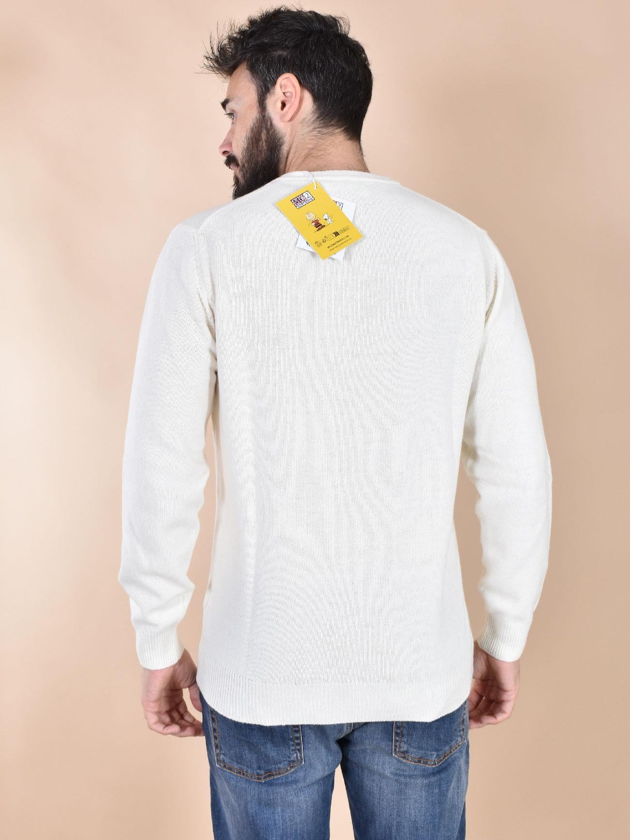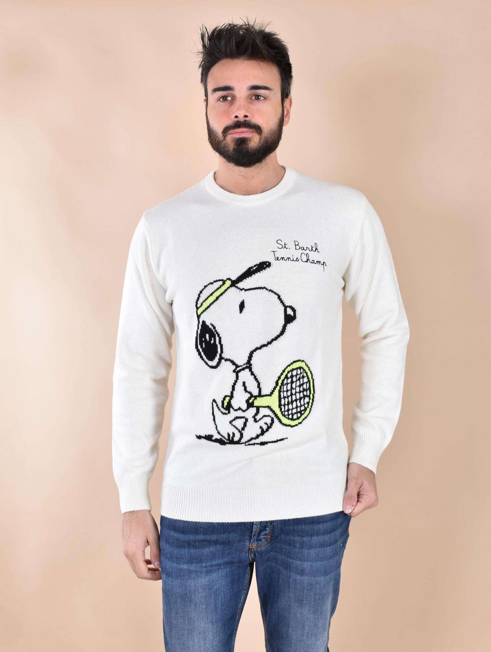 Maglia girocollo vestibilità slim, colore bianco con stampa Snoopy tennis.Edizione Peanuts. Tessuto morbido e soffice, non provoca fastidio a contatto con la pelle. Composizione 45% lana, 30% viscosa, 15% nylon, 10% cashmere.