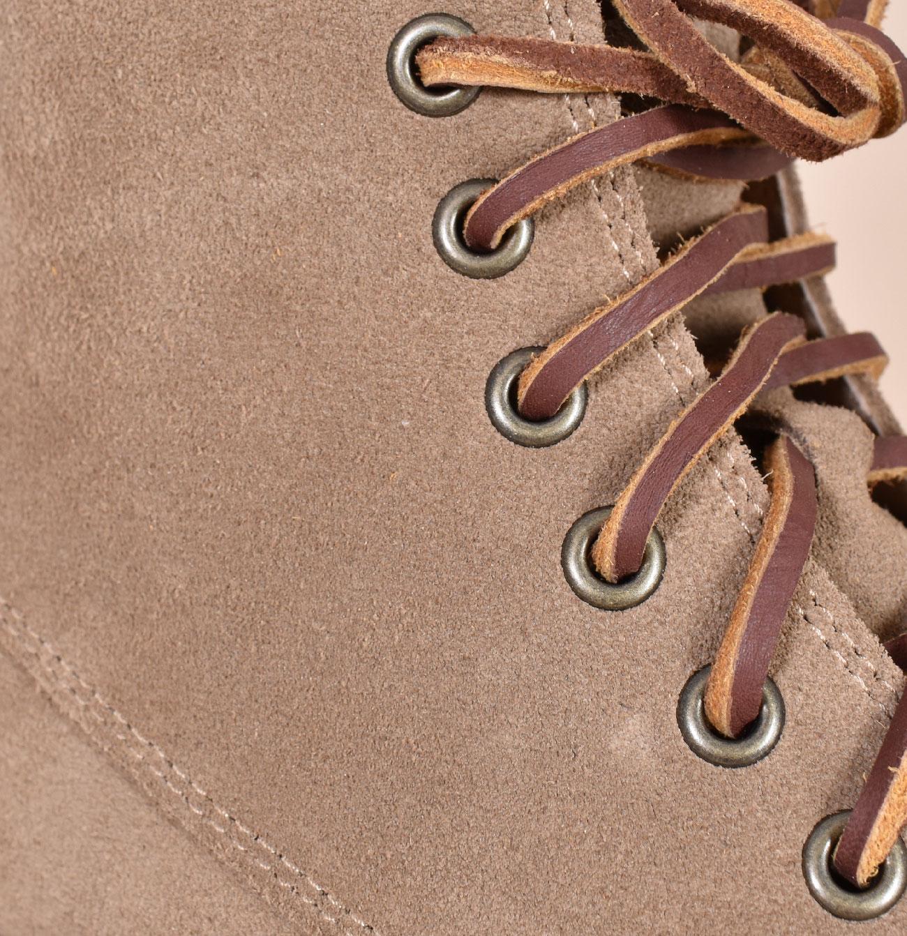 Scarpe modello collo alto, tomaia in pelle scamosciata colore beige.