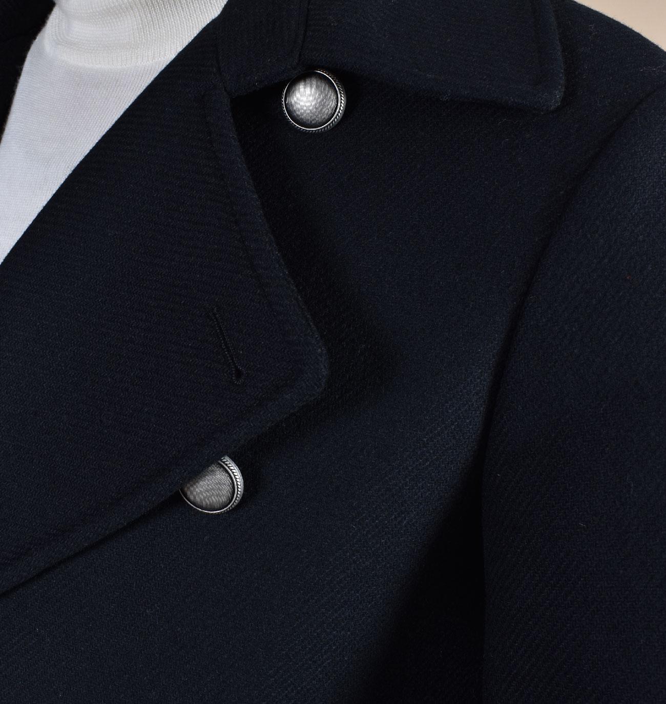 Cappotto modello soprabito doppiopetto, vestibilità regolare, colore nero. Cintura in vita, tasche a filo, collo ampio, bottoni in metallo. Composizione 68% lana, 12% poliammide, 15% poliestere. Made in Italy. Collezione Autunno/Inverno 2026 Il modello in foto è alto 1.80 x 81 kg, veste taglia 48