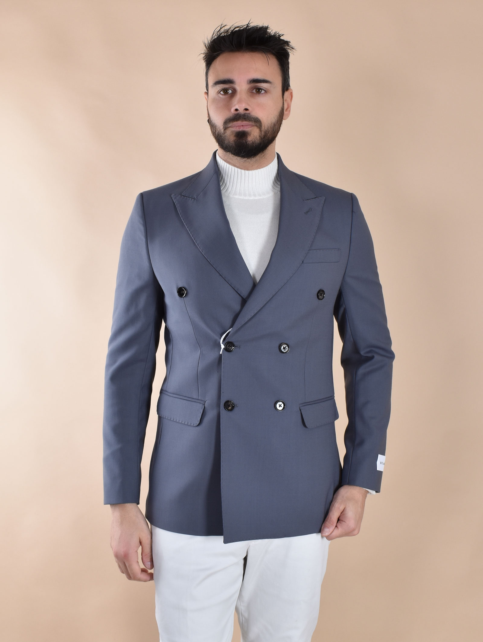 Prince of Wales perlgraue Woll-Seiden-Kaschmirjacke