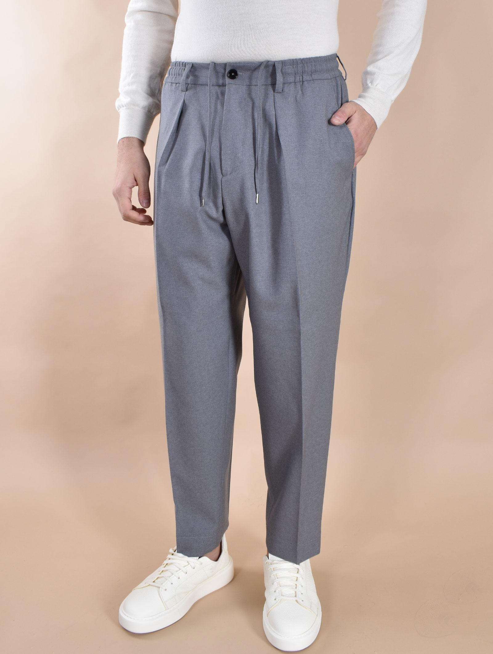 -Hose im Fischgr?tenmuster mit Bundfalten aus grauer Wolle