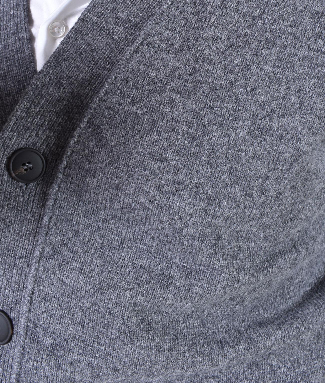 Regular-fit cardigan in gray, Super Geelong weave with wavier fiber structures than traditional merino wool, making the garment softer and more comfortable. 100% virgin wool. Soft and fluffy, it doesn't itch when in contact with the skin. Made in Italy.