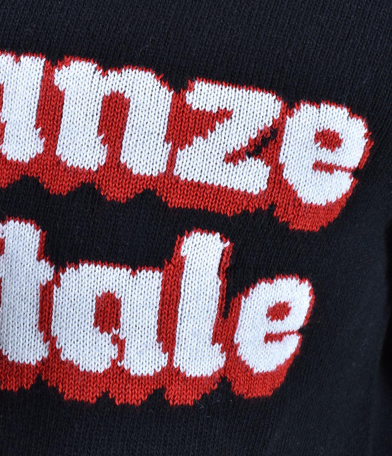 Slim-fit crew neck sweater in black with a Christmas Holidays logo print. Limited edition. Soft and cozy fabric that won't sting when in contact with the skin. Composition: 40% wool, 30% viscose, 20% polyamide, 10% cashmere.