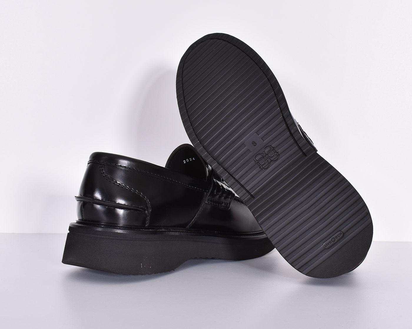 High-top moccasin shoes in black matte brushed leather. Live Tech rubber sole. Made in Italy.
