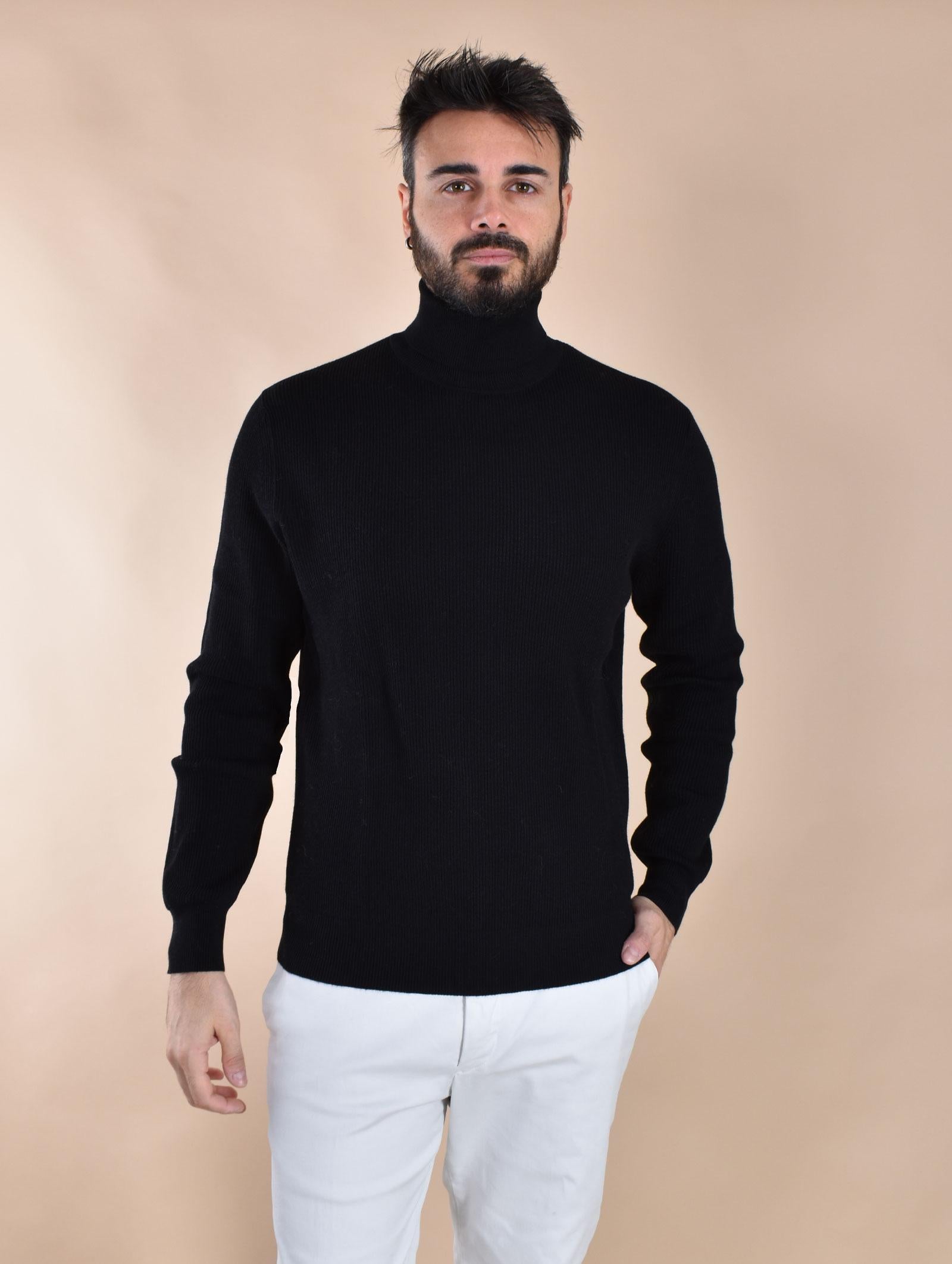 Thick turtleneck sweater, soft fabric, regular fit. Composition: 38% viscose, 37% cotton, 21% nylon, 2% cashmere, 2% wool.