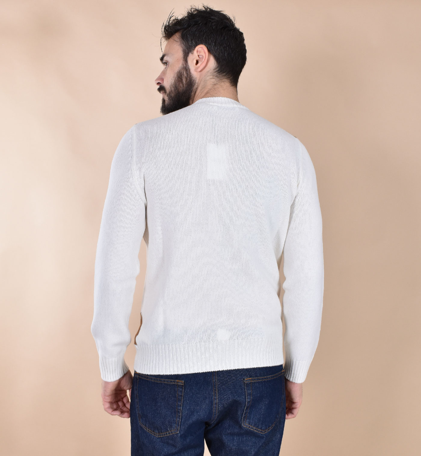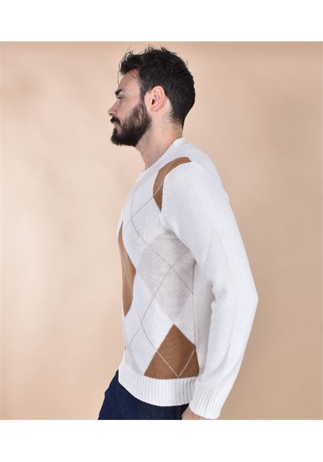 Slim-fit crewneck sweater in 100% ultra-soft virgin wool, Super Geelong weave. The soft and supple fabric doesn't itch when in contact with the skin. White with a diamond pattern. Made in Italy.