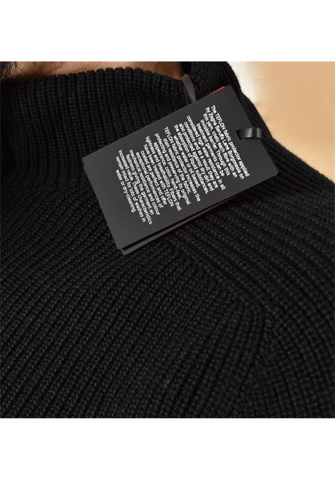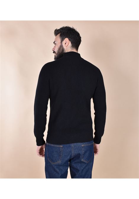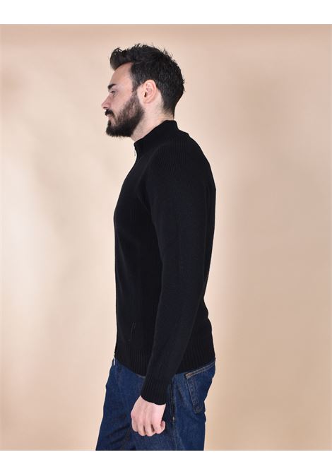 Mock neck sweater in 100% virgin Rain Wool wool, water-repellent TEFLON treatment. Black, slim fit. Two-way zipper opening. Soft and cozy fabric, non-stinging. Made in Italy.