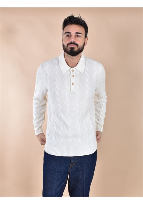 Regular-fit Athleisure polo shirt, cream white, buttonless. Soft and comfortable fabric, comfortable against the skin. 100% virgin wool. Made in Italy.