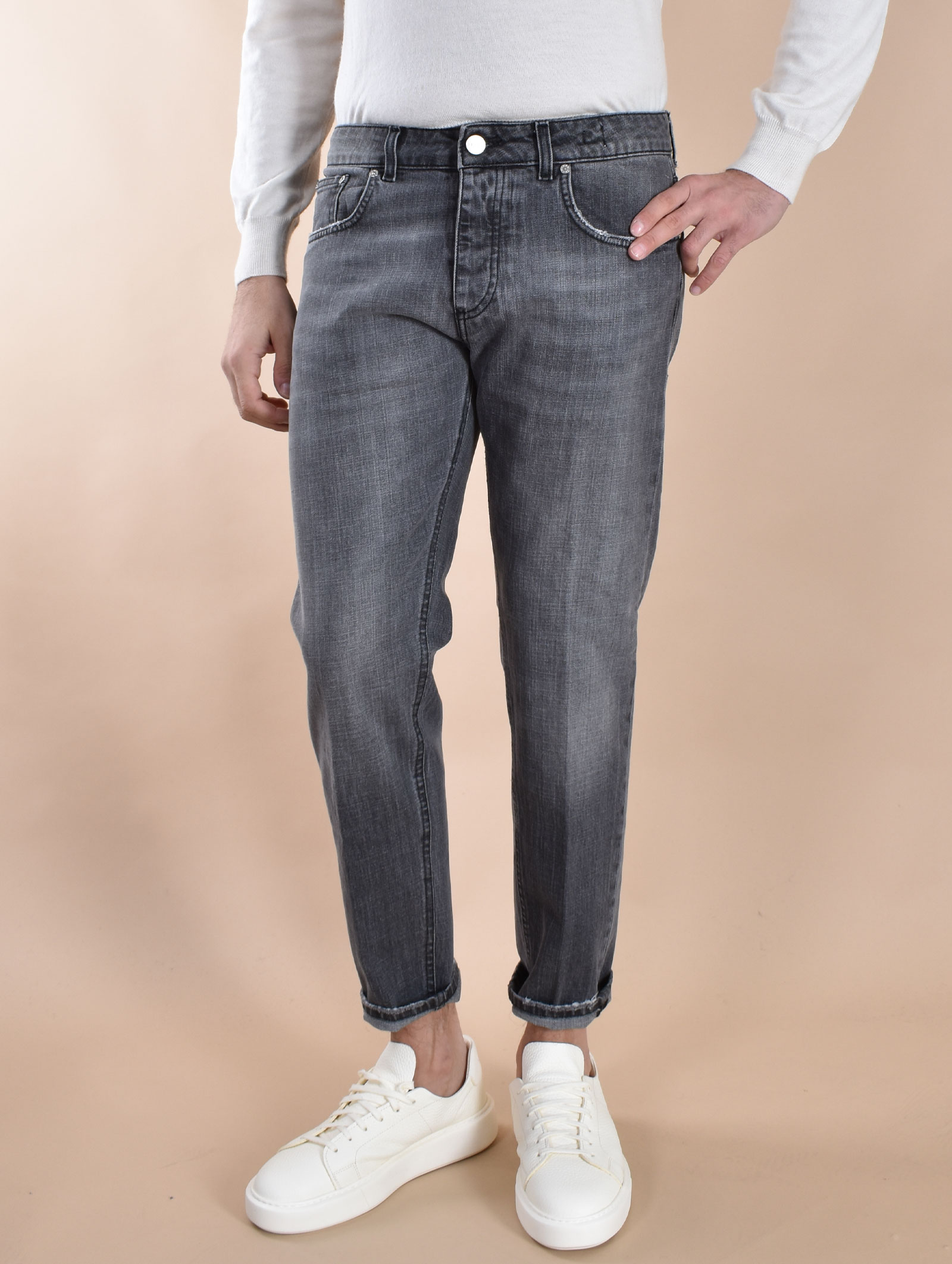 Jean slim noir ? 5 poches. Ceinture ? quatre boutons. Fabriqu? en Italie. 98 % coton, 2 % ?lasthanne.