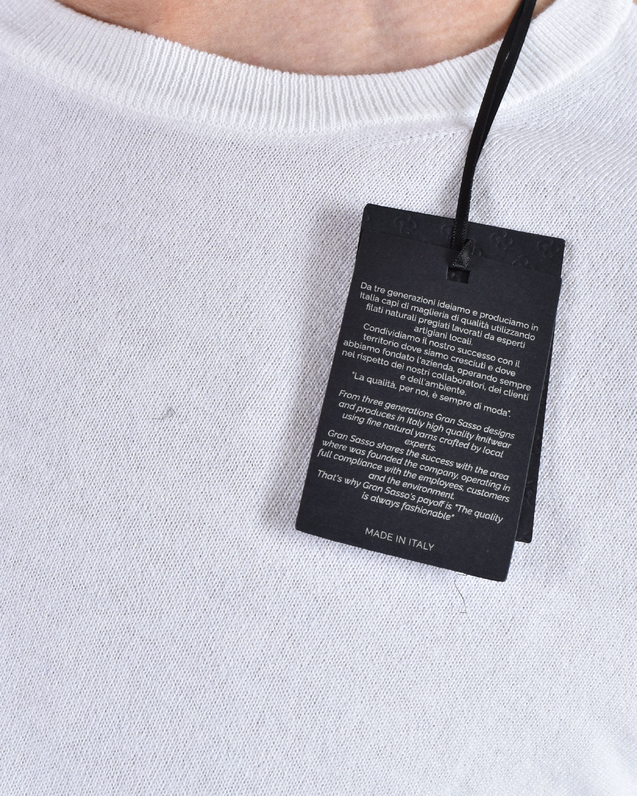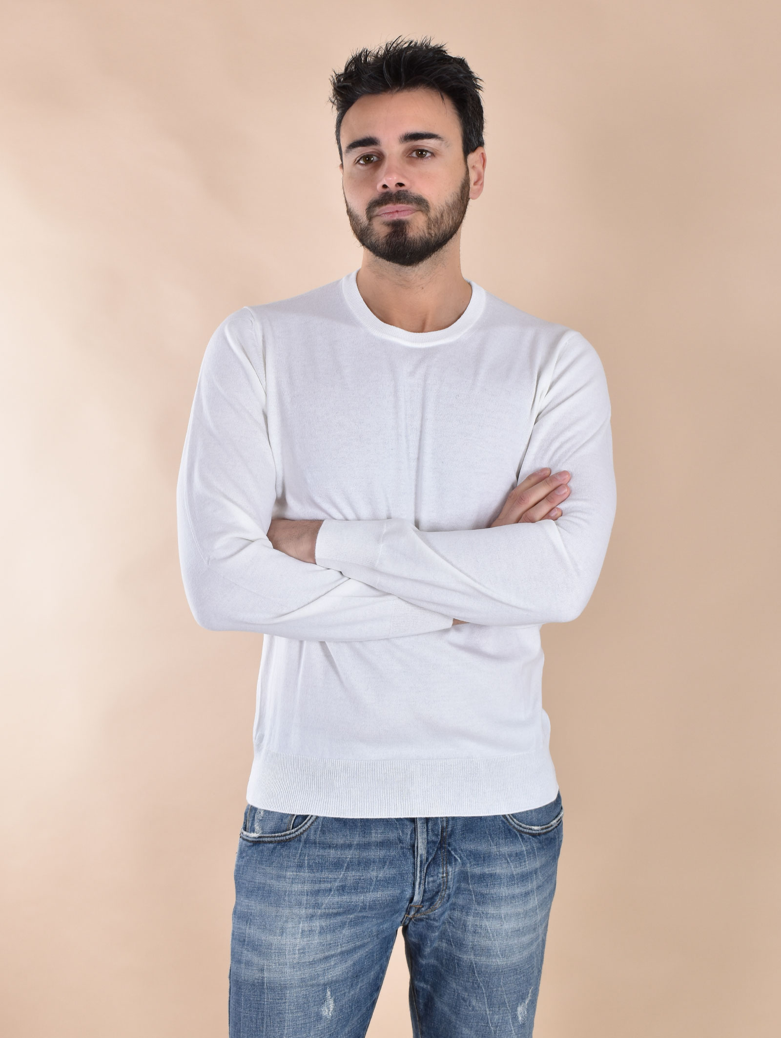 Pull ras du cou blanc optique, coupe ajust?e. Mati?re fine, douce et confortable, agr?able au toucher. 50 % laine, 50 % cachemire. Fabriqu? en Italie.