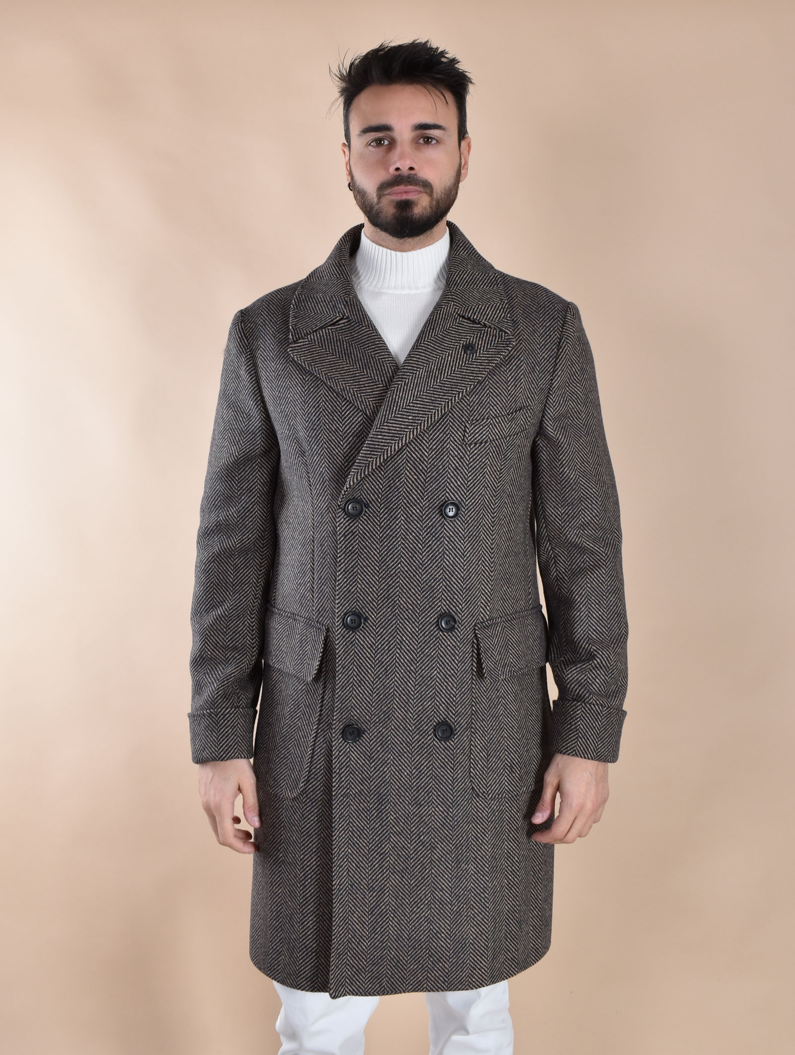 Cappotto Outfit spigato doppiopetto